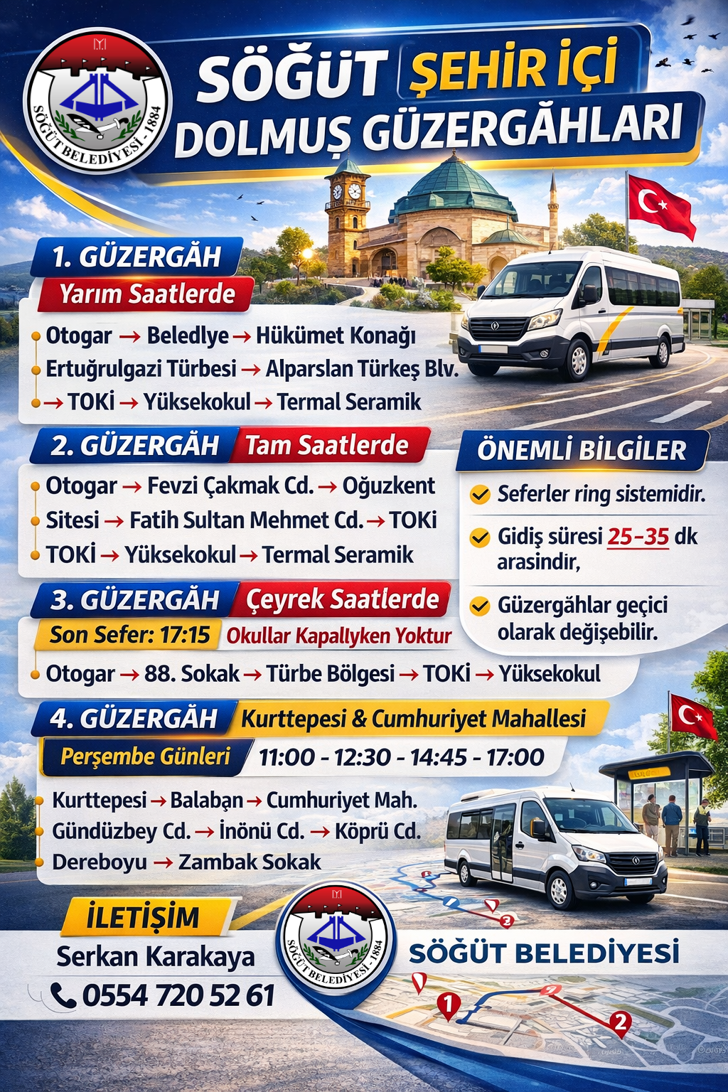 Kurttepesi, Balaban ve Cumhuriyet Mahallerine, Gündüzbey Caddesi, İnönü Caddesi, Köprü Caddesi, Dereboyu Sokak, Demirci Çeşmesinden dönüş, Zambak Sokaktan, Kızılsaray su deposundan dönüş güzergahından Perşembe günleri 11:00/12:30/14:45/17:00 olarak uygulanacaktır. Saat düzenlemesi netleşen ihtiyaca göre, hareket merkezi ve güzergah Belediyece yeniden düzenlenir.